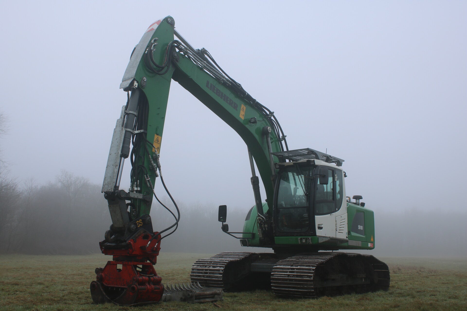 Een eenzame machine in het weiland.